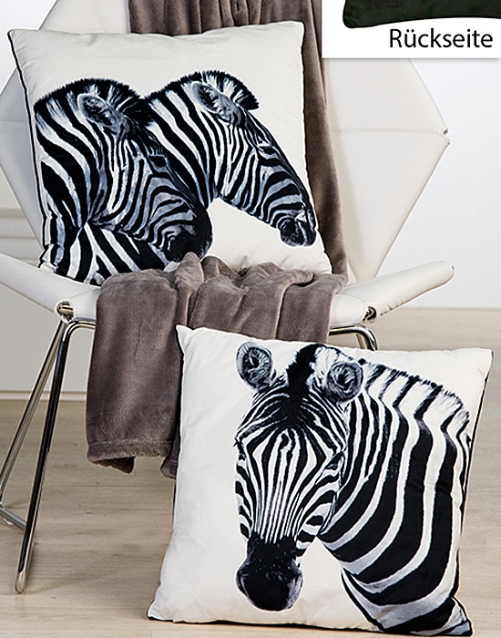 Dekorativní polštáře Zebra jsou nezvyklou dekorací pro vaši pohovku, která vám současně trochu zpříjemní odpočinek a lenošení. Zebra není zrovna typický domácí mazlíček, a nejen proto se polštáře na vaší pohovce stanou nepřehlédnutelným doplňkem. S touto sadou získáte dva polštáře - na jednom je jedna zebra a na druhém dokonce dvě.