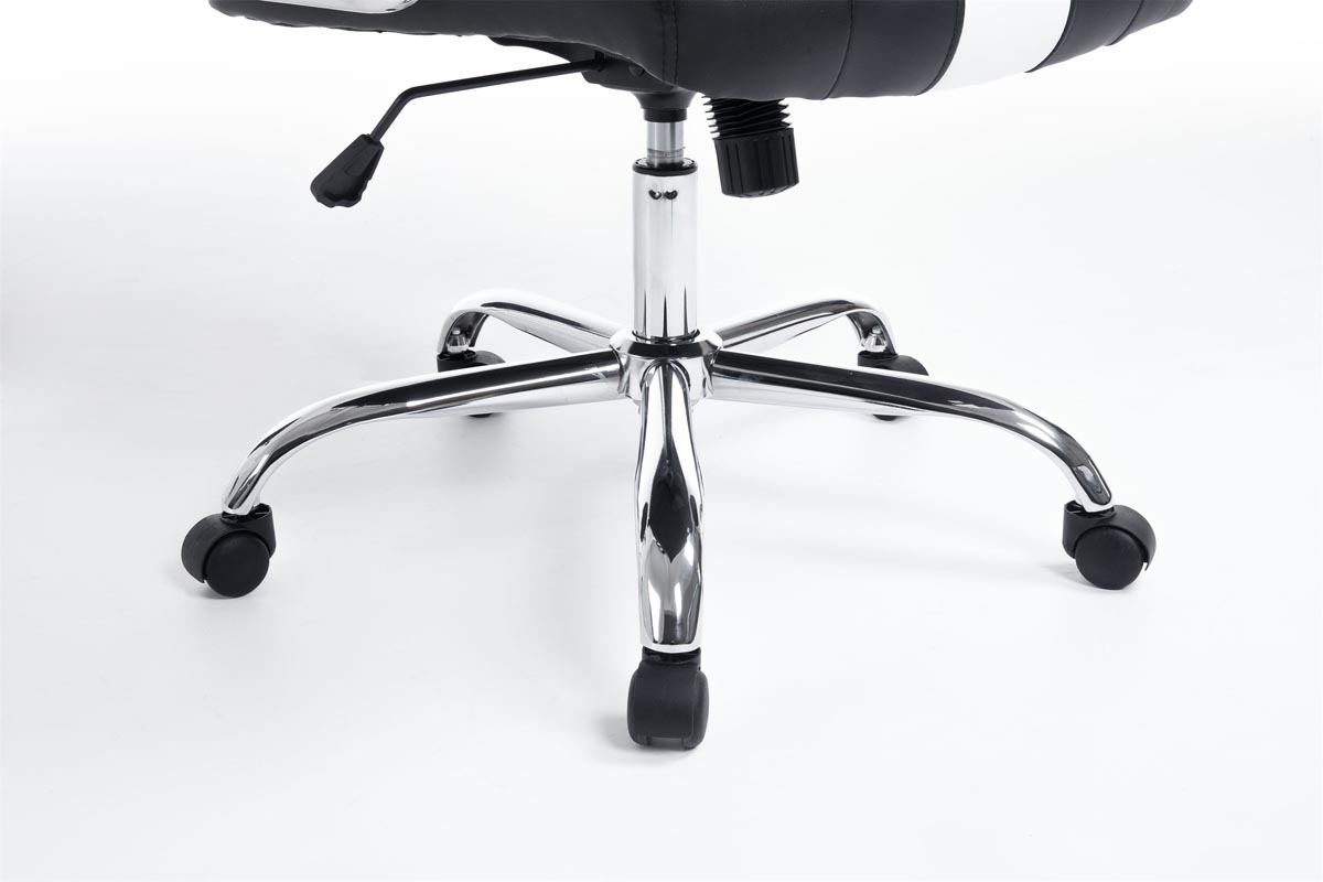 Designové kancelářské křeslo Olymp je velice exkluzivní s velmi kvalitním čalouněním a potahem. Rám je vyroben z kovu s pochromovaným vzhledem a je proto velmi stabilní. Díky nastavitelné výšce sedáku je zaručeno ergonomické sezení. Výška sedáku je plynule nastavitelná díky páčce pod sedákem. Vestavěný houpací mechanismus poskytuje větší volnost pohybu. Kancelářská židle je stabilní na pěti kolečkách s hladkým chodem. Skevěle zapadne do kanceláře či pracovny.